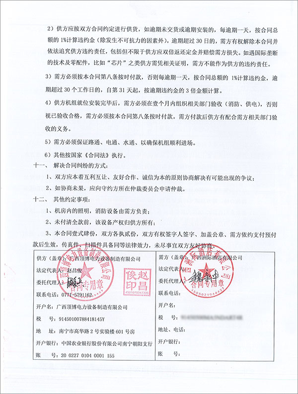 近日,廣西頂博電力設(shè)備制造有限公司再度傳來好消息,我司成功與廣西洲際酒店有限公司成功簽訂2臺