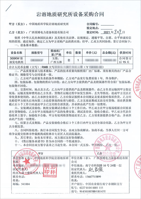 2021年9月9日,廣西頂博電力設(shè)備制造有限公司再度傳來(lái)捷報(bào),中國(guó)地質(zhì)科學(xué)院巖溶地質(zhì)研究所成功訂購(gòu)一臺(tái)